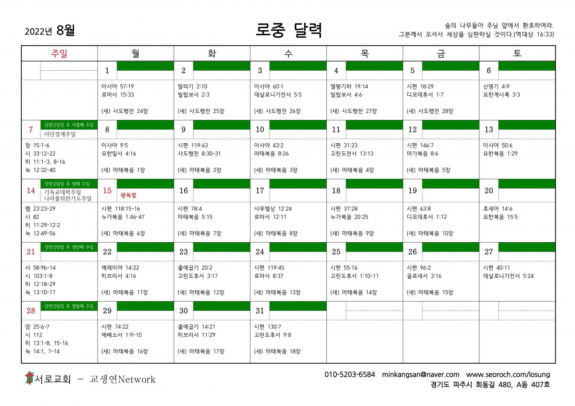 8월 로중달력